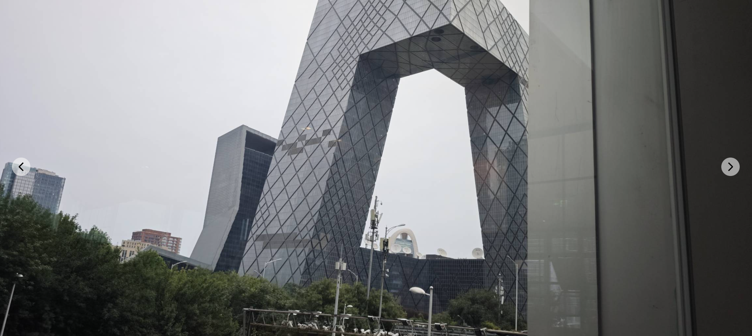 吃饭的时候才发现 我们竟然坐在了超级无敌观景位 窗户边上就是央视 大裤衩