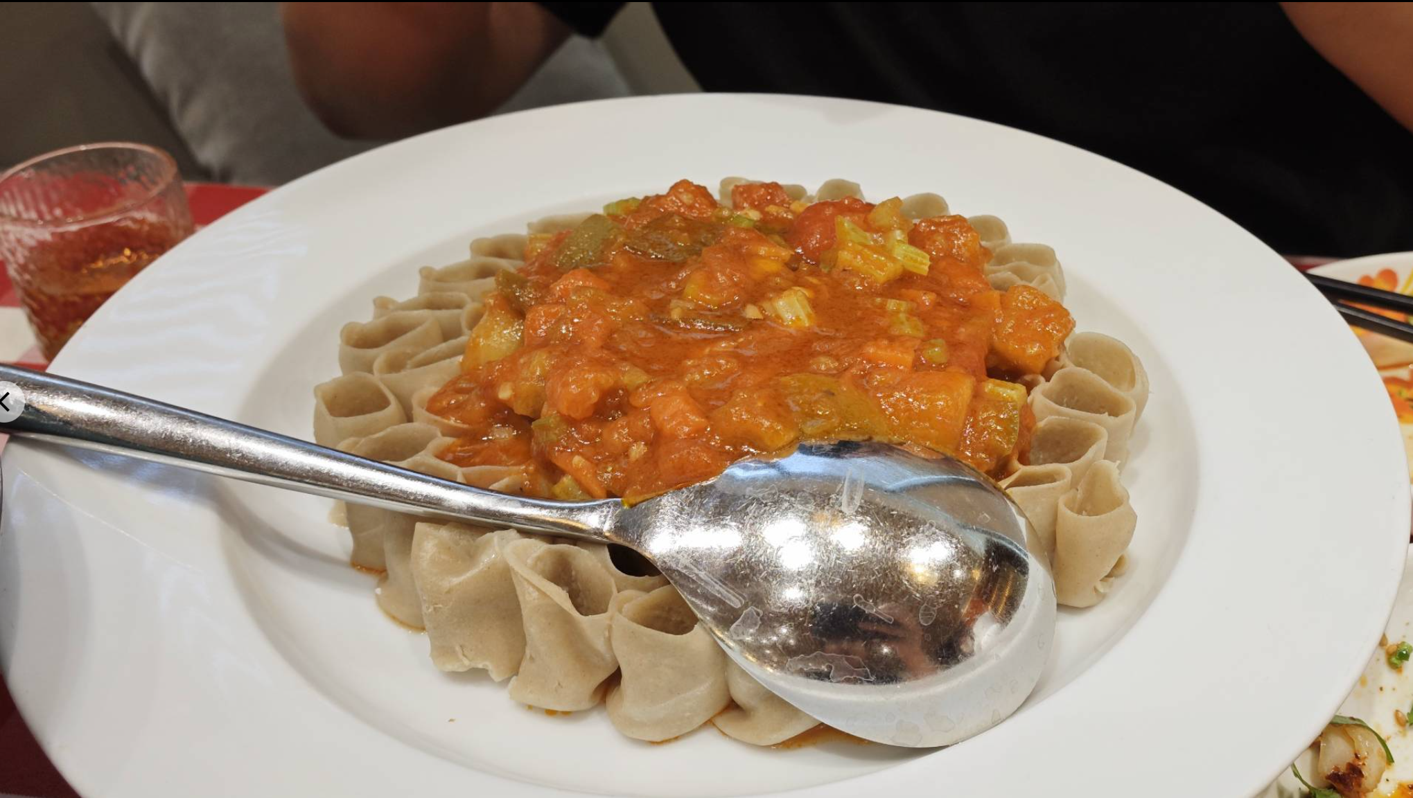 这个是五种番茄莜面 这个我觉得可以强烈推荐(如果不考虑价格的话) 这个味道就跟甜口的西红柿鸡蛋面一样 不过这里面没有鸡蛋 因为他们炒鸡蛋要你自己单点!!!!!!