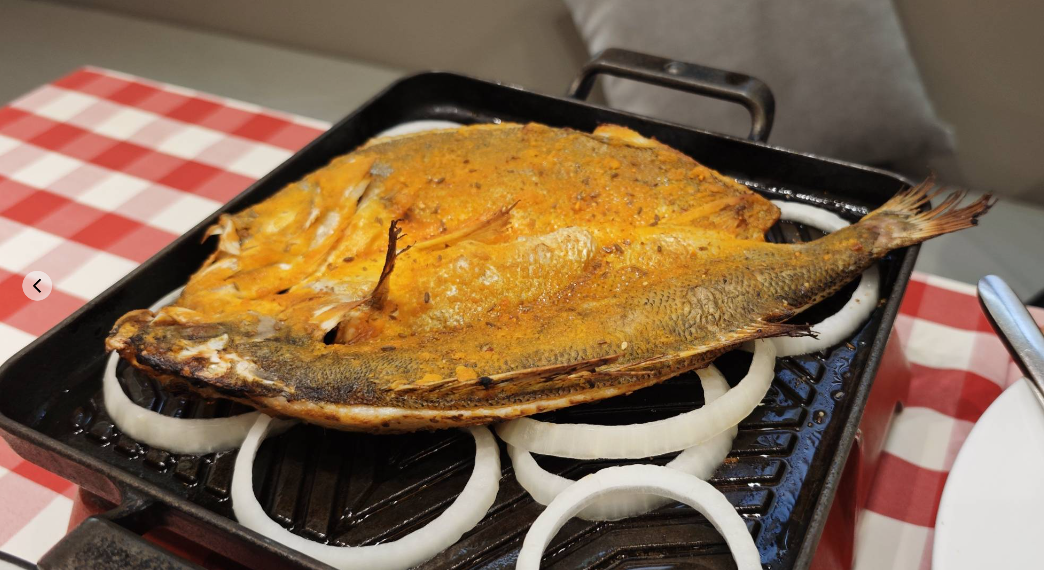 这个是烤鱼 这个烤鱼跟咱们去烤鱼店吃的一点也不一样 没有浇汁啥的 也不能涮个菜 就这么干干巴巴的上来了 差评
