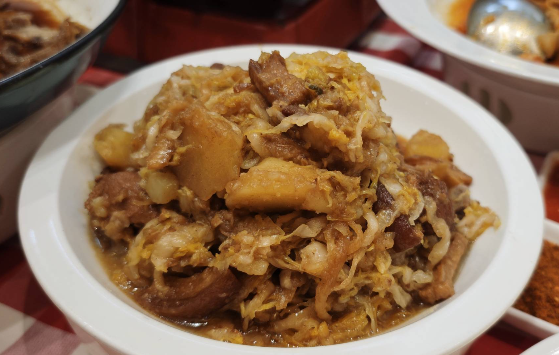这道菜就厉害了 跟职工食堂的炖菜一个味 唯一不一样得的 这个卖80多块钱 死贵