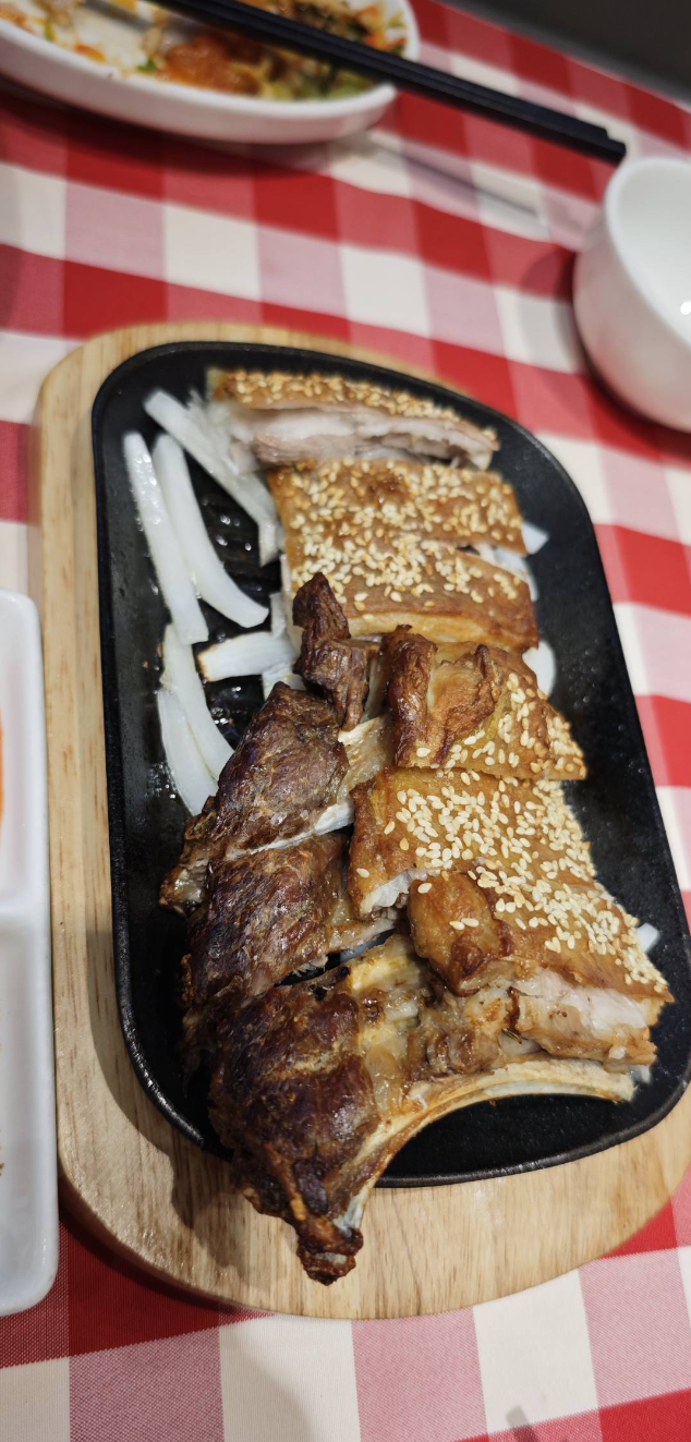 然后是这个100多块钱的烤羊排 感觉一个上小学的小孩都能几口就吃完了 完全没有啥性价比