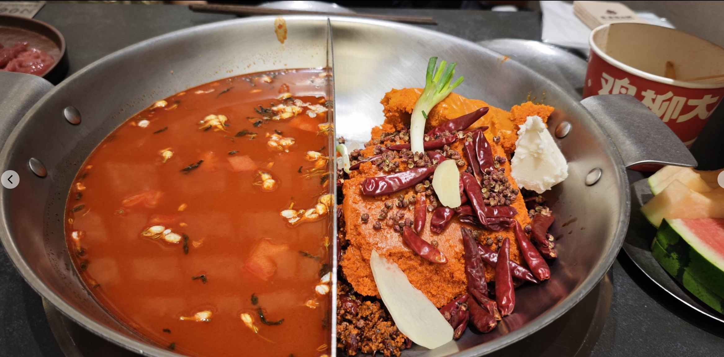 这家店非常有意思的一点是 进门的时候他就会问你喝什么茶 然后用泡好的茶汤倒进辣锅里面代替水,这样辣锅吃起来就会有茶的清香 这个创意非常棒